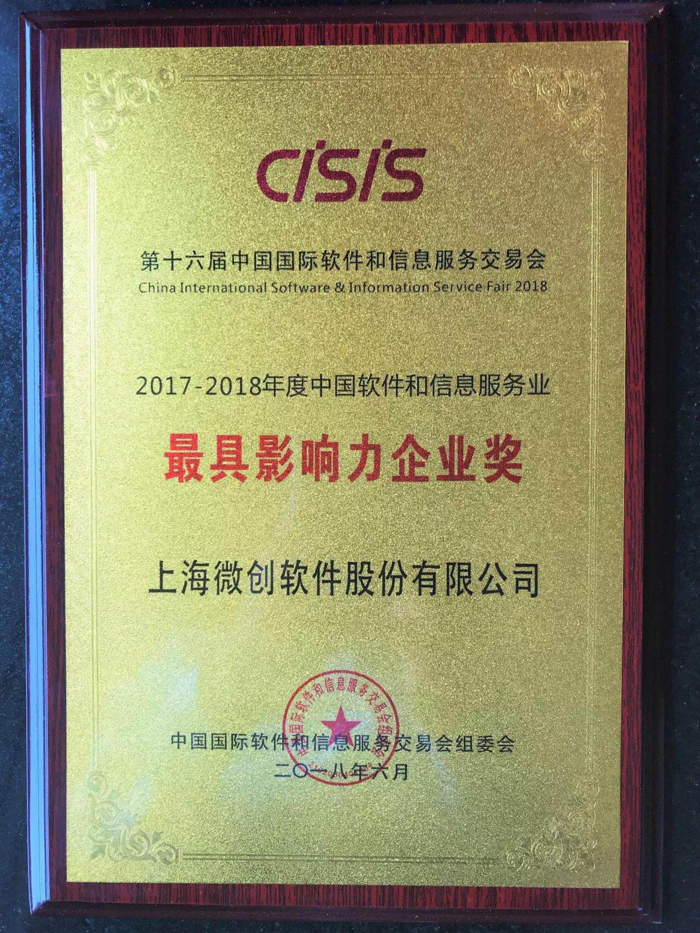 2017-2018 Most Influential Enterprise in China’s Software Information Service Industry