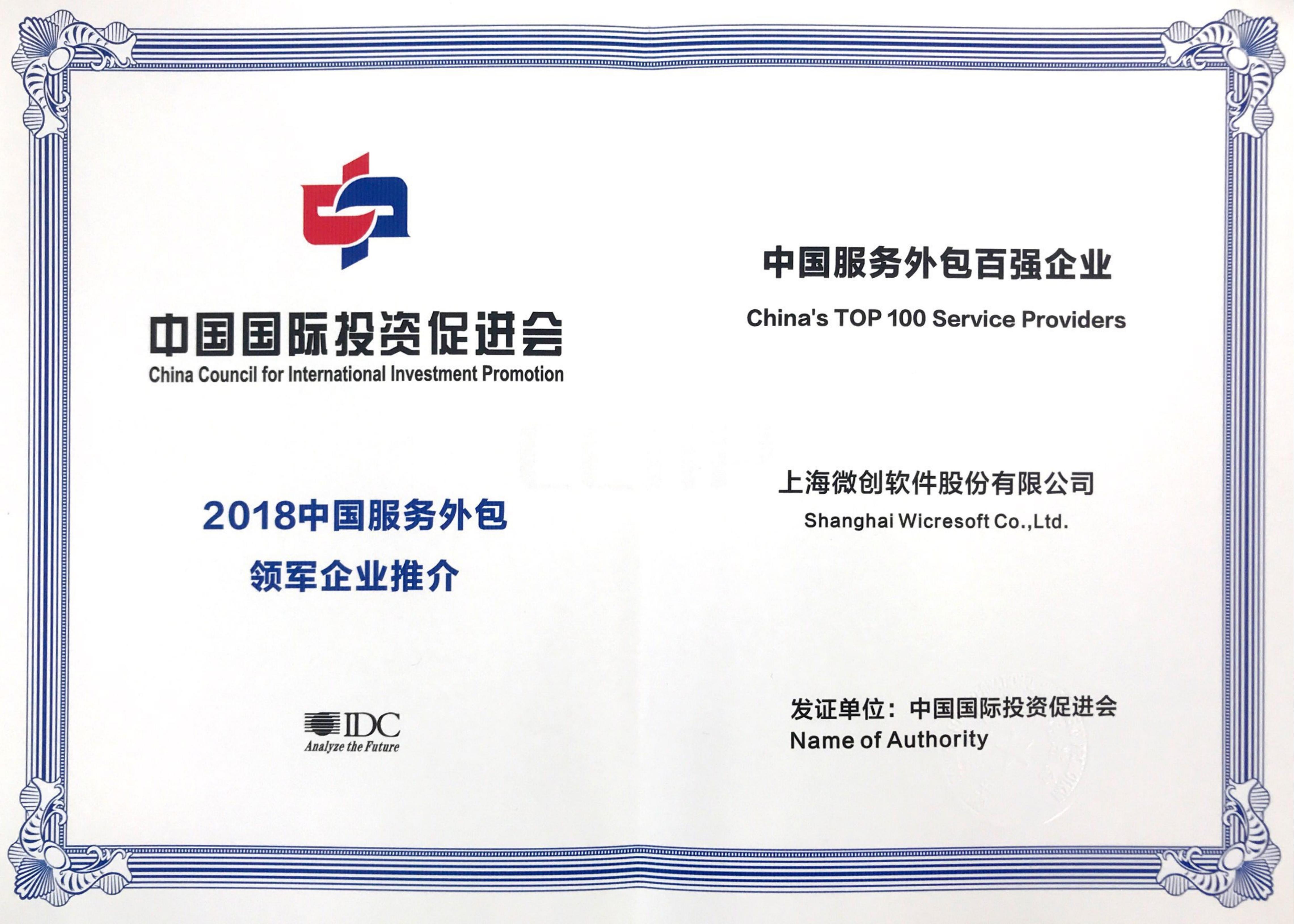 China’s Top 100 Service Outsourcing Enterprise